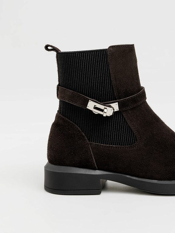 Челси с пряжкой от TREGUBOV — стильная базовая пара, которая идеально сочетает комфорт и современный дизайн. Модель выполнена из натуральной кожи или мягкой замши и дополнена аккуратной металлической пряжкой, придающей образу утончённый акцент. Удобная посадка, эластичные вставки и устойчивая подошва делают эти челси идеальным выбором для динамичного ритма города. |