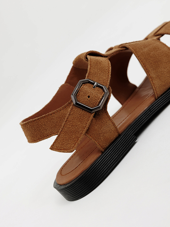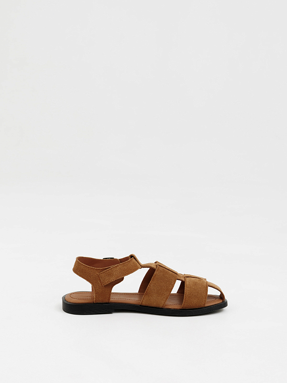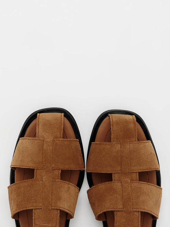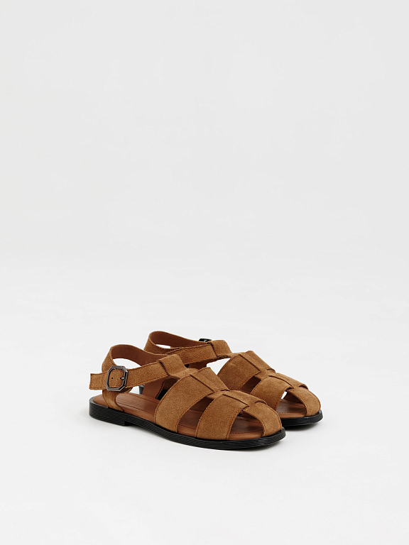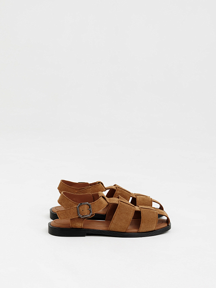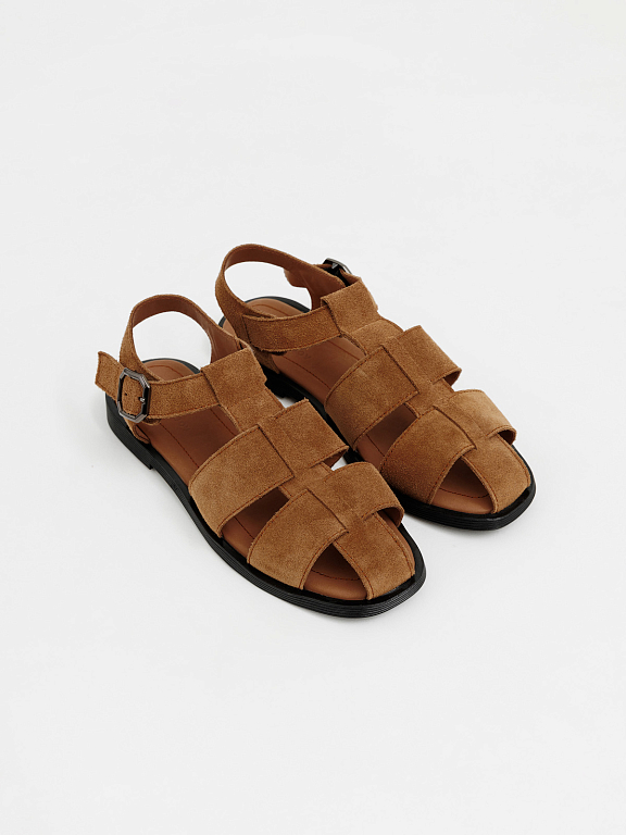 Рыбацкие сандалии надёжно фиксируются на ноге, обеспечивая комфорт в течение всего дня. Закрытый мыс и переплетения придают образу стильный, продуманный вид.